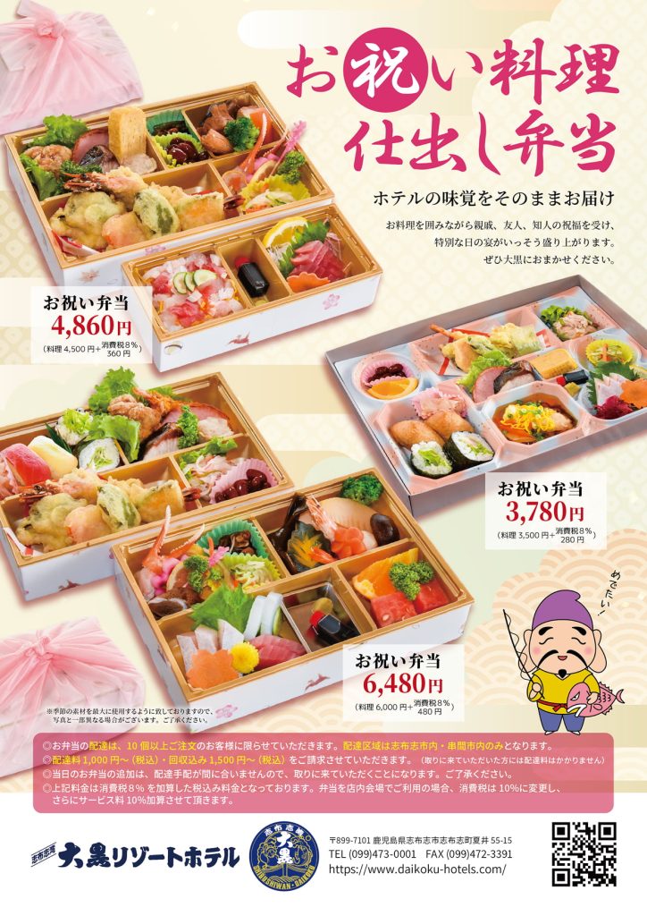 お祝い弁当 4,860円(料理4,500円+360円:消費税8%)